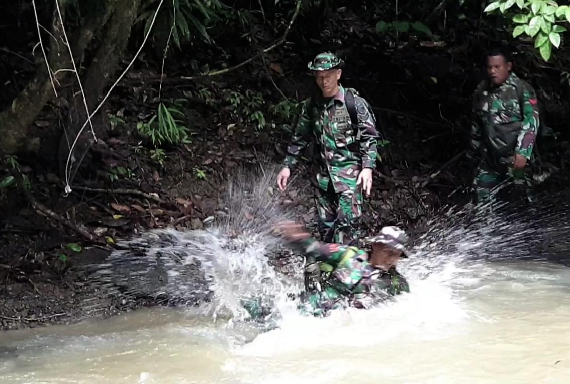 Meski kondisi cuaca dan medan ekstrem, namun tidak menyurutkan semangat para kesatria TNI itu mengangkut material menerobos jalur sungai di tengah hutan belantara. Terlihat pimpinan Danrem 011/Lilawangsa, Kolonel Inf Ali Imran bersama prajuritnya perorangan menggendong material ke makam.