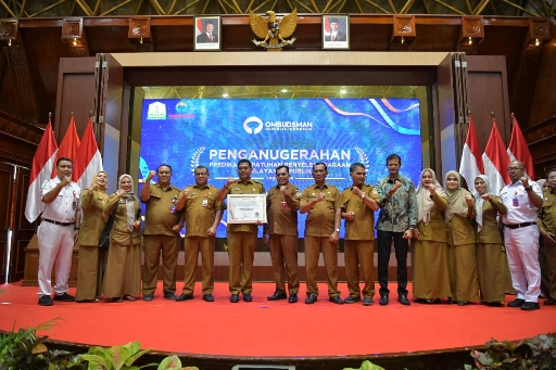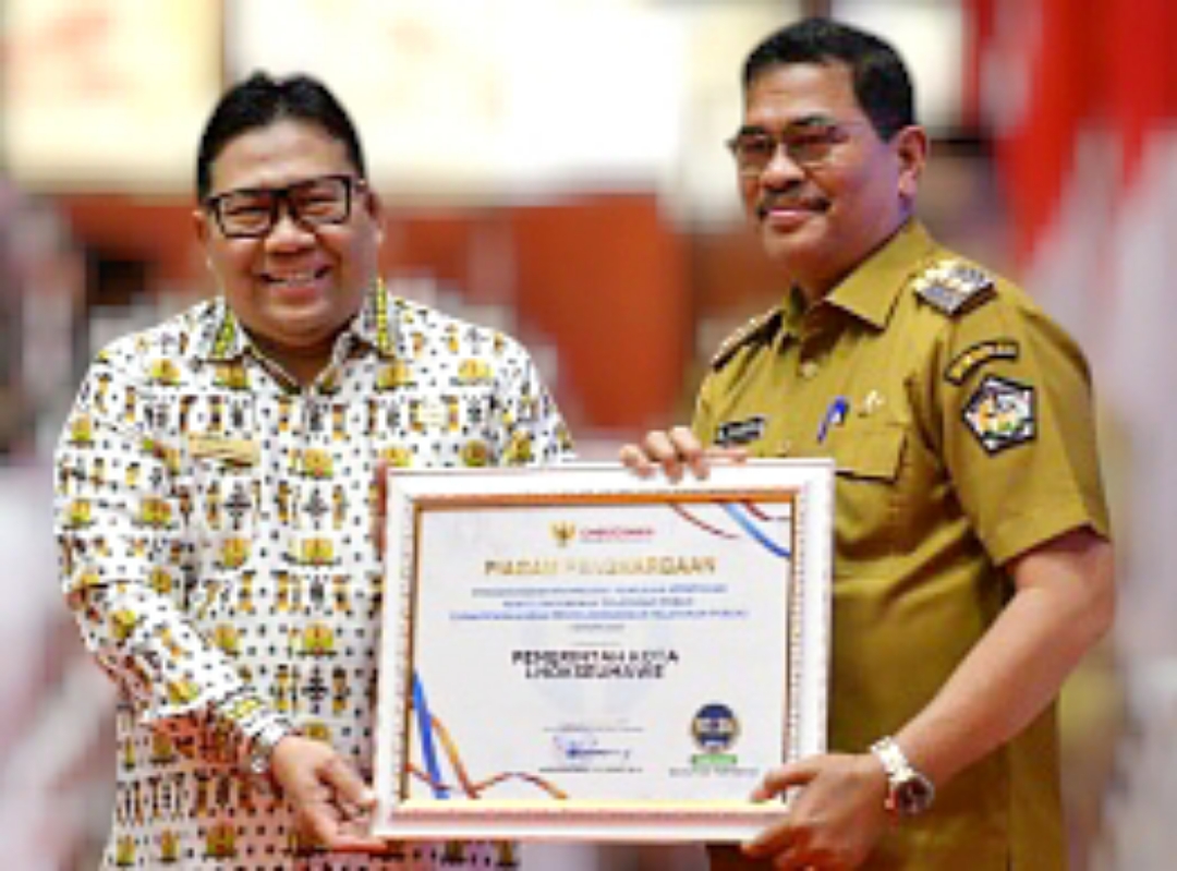 Penganugerahan Predikat kepatuhan Penyelenggaraan Pelayanan Publik tahun 2024 langsung diserahkan oleh anggota Ombudsman Republik Indonesia Dadan Suparjo Suharmawijaya didampingi Kepala Perwakilan Ombudsman Aceh Dian Rubianty kepada Pj Walikota Lhokseumawe A Hanan, SP. MM di Anjong Mon Mata Banda Aceh belum lama ini.