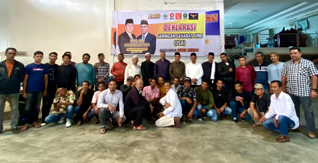 REDELONG (MA) Ratusan masyarakat dan mantan kombatan yang tergabung dalam Jaringan Sahabat AmRi (JSA) secara resmi menyatakan dukungan kepada pasangan calon Bupati dan Wakil Bupati Bener Meriah, Mohd. Amin dan Ridwan Abdul Muthalib (AmRi), dalam Pilkada 2024 mendatang.