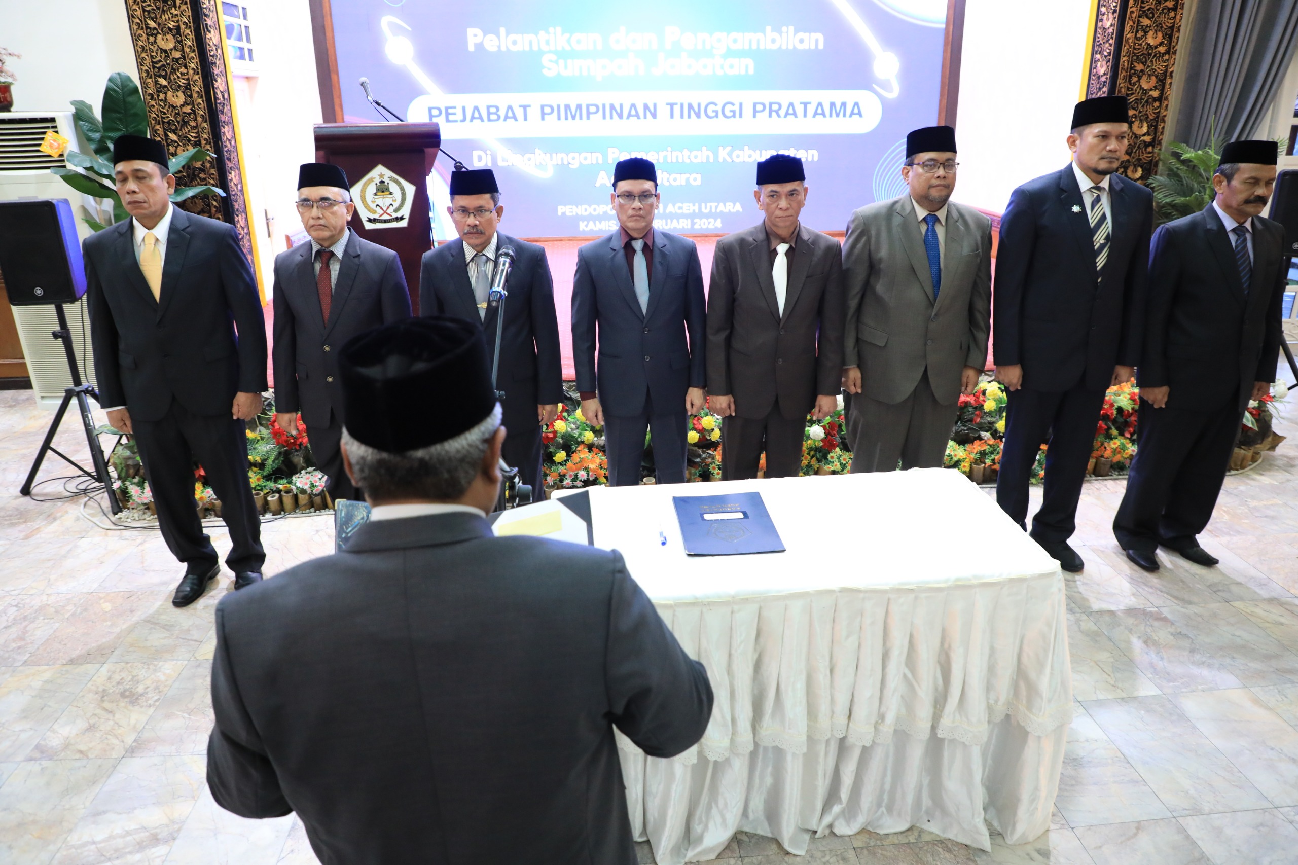 LHOKSUKON (MA) – Kali ini, Sebanyak 8 (Delapan) pejabat pada Jabatan Pimpinan Tinggi Pratama (JPT) dalam jajaran Pemerintah Kabupaten (Pemkab) Aceh Utara dilakukan mutasi atau rotasi jabatan. Pelantikan dan pengambilan sumpah berlangsung pada Kamis sore, 1 Februari 2024, di aula Pendopo Bupati.