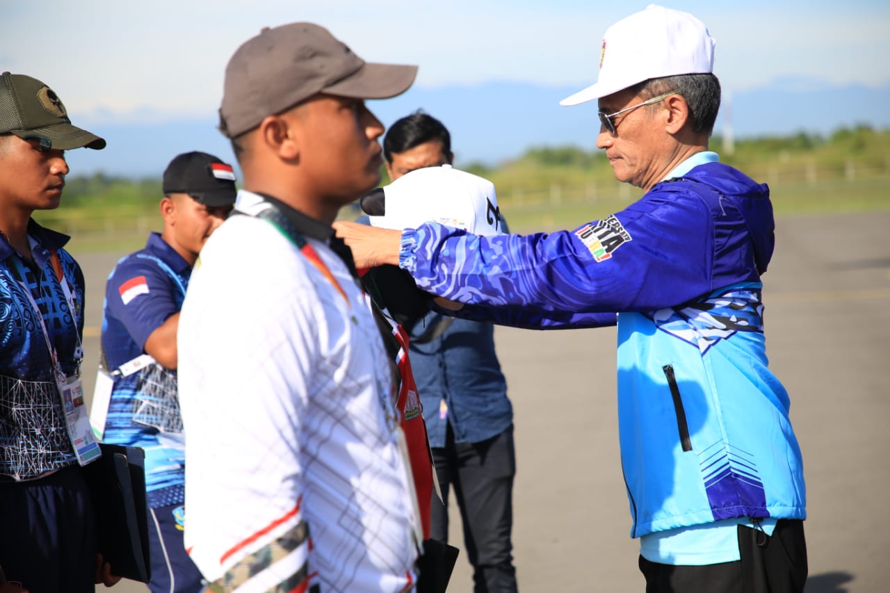 LHOKSUKON (MA) — Ketua Komite Terbang Layang Marsda TNI (Pur) Widyantoro bertindak sebagai Inspektur Upacara pada gelar pembukaan Pertandingan Cabang Olahraga Terbang Layang Pekan Olahraga Nasional (PON) XXI Aceh -Sumut berlangsung di venue Bandara Malikussaleh Kabupaten Aceh Utara, Jumat, 6 September 2024.