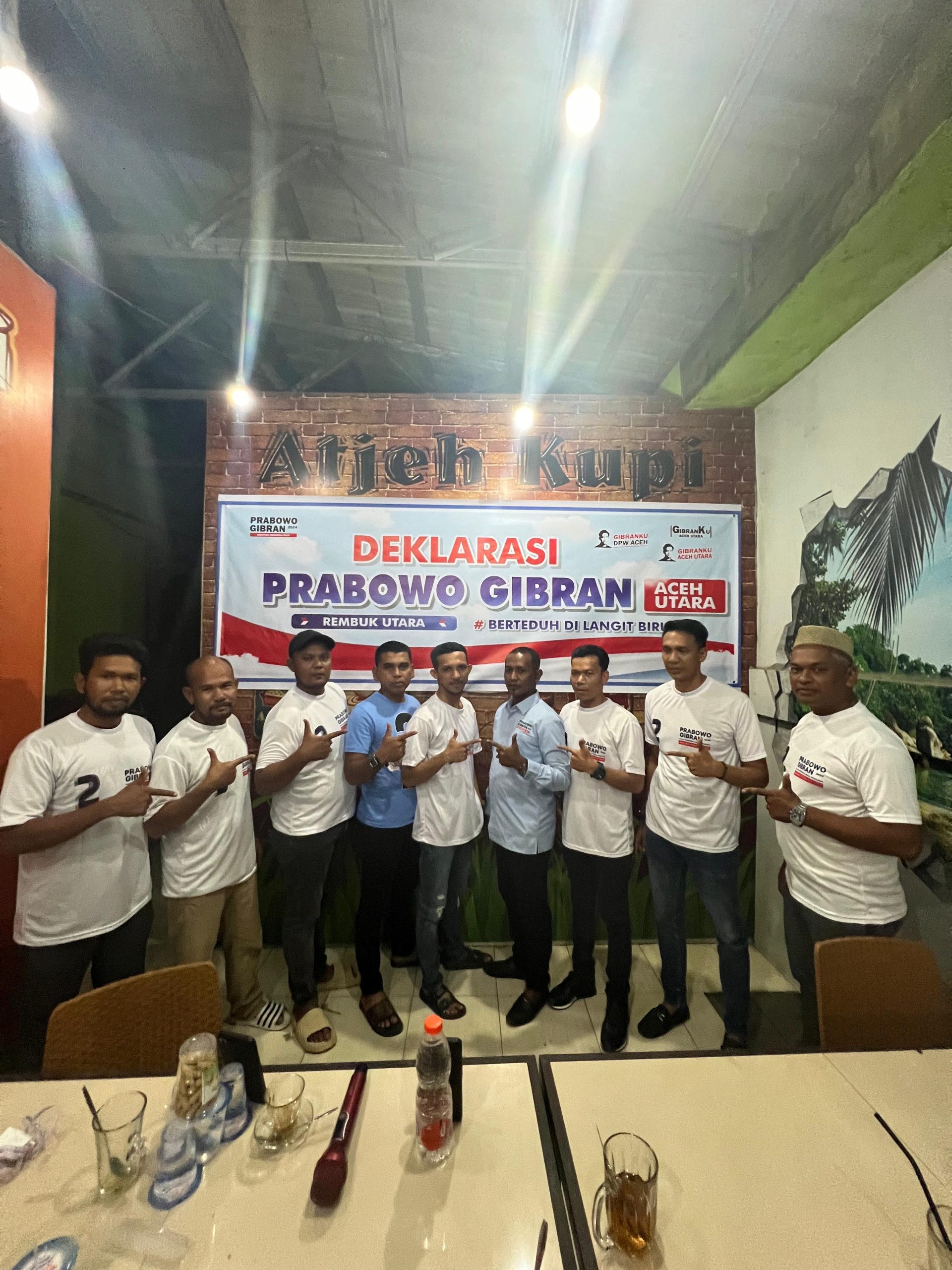 Ketua Gibranku Aceh Utara Murhalim,S.Pd saat mendeklarasikan dukung Prabowo-Gibran menyampaikan dimana pihaknya siap memenangkan Prabowo Subianto dan Gibran Rakabuming Raka untuk jadi Presiden Republik Indonesia periode 2024-2029 di pemilu ini.