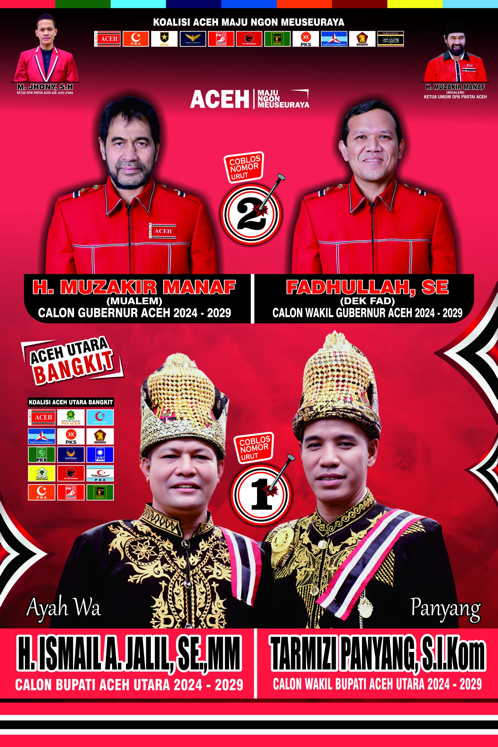 Dalam berbagai kesempatan, Ayah Wa dan Panyang secara konsisten mengajak masyarakat Aceh Utara untuk memberikan dukungan penuh kepada H. Muzakir Manaf (Mualem) dan H. Fadlullah (Dek Fadh) sebagai Calon Gubernur dan Wakil Gubernur Aceh.