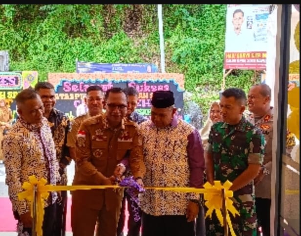 Pejabat Bupati Aceh Selatan Cut Syazalisma menggunting pita tanda peresmian Rumah Sakit Cahaya Sehat.(foto/mediaaceh.co.id/Maslow Kluet).