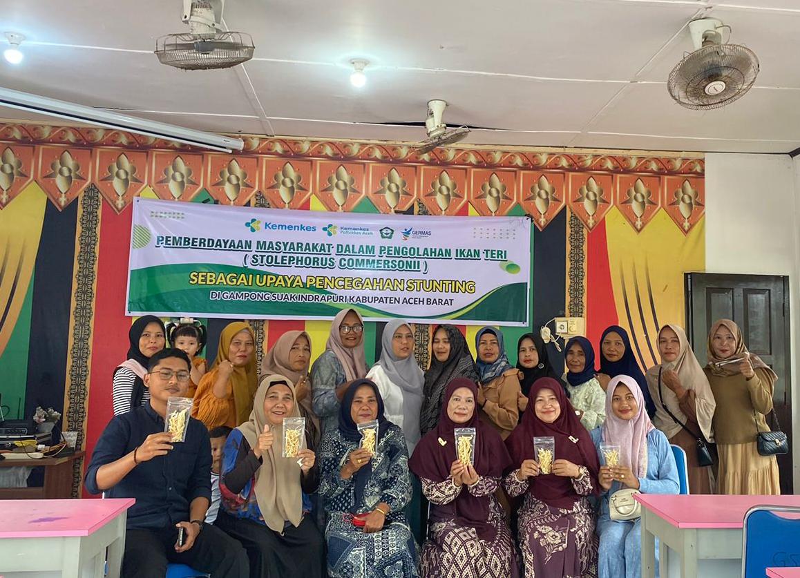 ACEH BARAT | MA — Tim Pengabdian Masyarakat (Pengabmas) Program Study (Prody) D-3 Keperawatan Meulaboh Poltekkes Kemenkes Aceh melaksanakan kegiatan program pemberdayaan masyarakat dalam pengolahan ikan teri (stolephorus Commersonii) di Suak Indrapuri Aceh Barat, Kamis, (28/8/2025).
