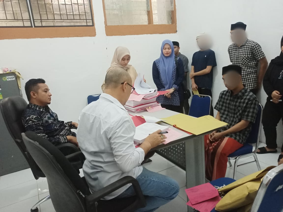 Jaksa Penuntut Umum (JPU) Kejari Aceh Selatan menerima 7 tersangka dan BB tindak pidana narkotika dari pihak Polres Aceh Selatan, Jumat. (26/7).(poto/mediaaceh.co.id/istimewa).