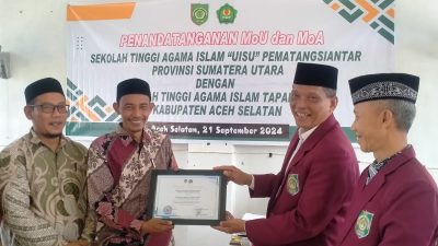 TAPAKTUAN (MA) — STAI Tapaktuan Aceh Selatan menjalin kerjasama dengan STAI UISU Pematang Siantar Sumut,…