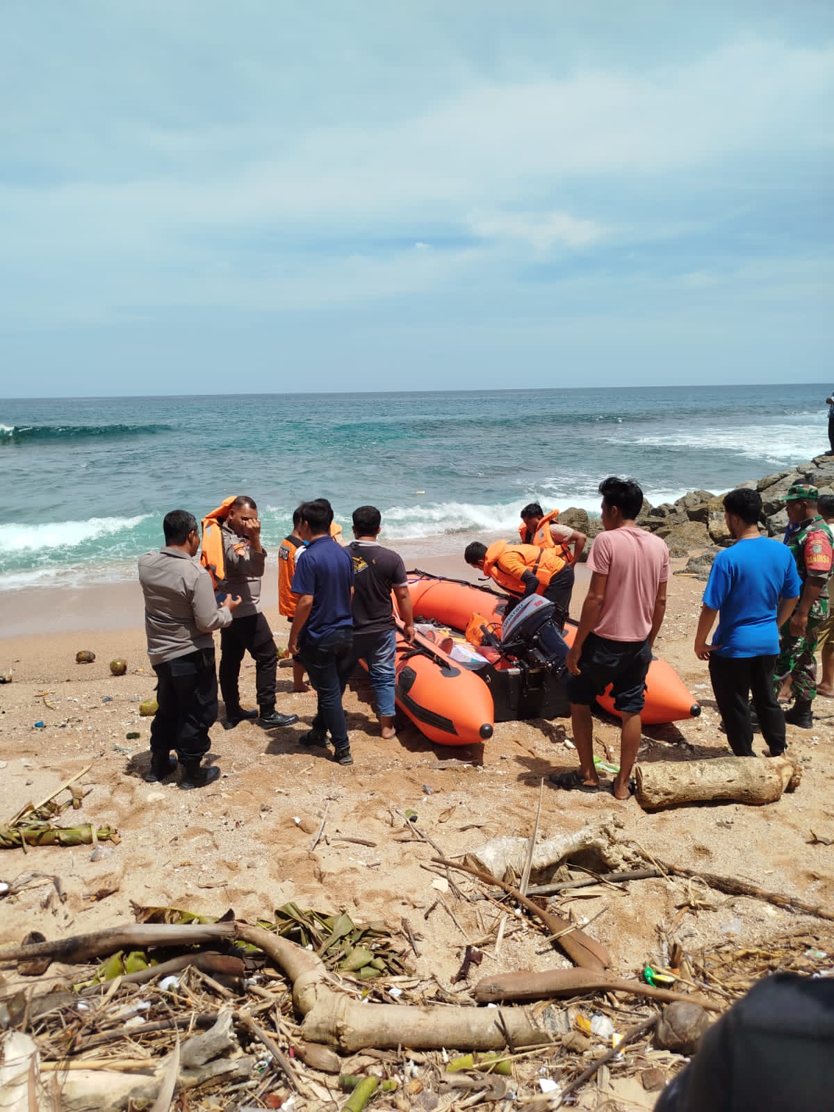 Namun, niatnya diurungkan, karena korban menghilang ditelan ombak dengan arus yang deras.